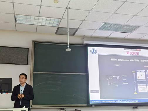 最后,李建星教授对电磁与信息技术研究所的科研工作进行了介绍。电磁所始终坚持面向国家重大战略需求、国民经济主要战场和国际科学技术前沿开展学术研究,在多功能可穿戴天线和微波微流体传感器、复杂电磁目标快速电磁计算算法、室内无线定位、符号级预编码方案等方面的研究受到学界广泛关注,被多家媒体报道。