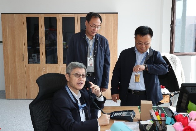 迈曾书记走遍了研究院七层的所有教师办公室和研讨室。在研讨室,迈曾书记遇到了正在给创新港研究生召开组会的青年拔尖人才刘海文老师。王晓凯老师为摄影爱好者,迈曾书记到访时晓凯老师正在批改学生作业,书记询问了课程情况,并称赞晓凯老师用相机记录了西迁老教授的风采,为交大留下了永恒的印迹。在信通办公室,书记喝着咖啡,询问了信通学院的党政运行情况,并使用办公室固定电话检查了正在创新港工作的学校各职能部门的到岗情况。在创新港工作的信通学院李凡副院长向书记汇报,信通学院所属创新研究所实验平台计划12月底完成硬装修,2020年3月底完成全部平台建设。书记查看了教师在创新港的工作登记表,称赞了信通学院的计划和安排,表示就应该有计划有步骤的尽快推进尽快全体入驻,并对研究院在创新港的文化建设、研究所路标标识落实等方面提出了要求。随后,书记视察了泓理楼内的网安学院、软件学院和人工智能学院等所属研究所建设情况。