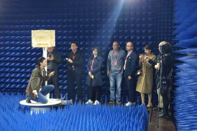 随后,校友们来到电磁与信息技术研究所的微波实验室,郭诚老师带领大家参观了微波暗室以及国内高校首台无线设备多探头空口测试系统和六轴机器人天线测试系统。