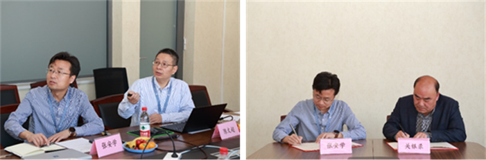 张安学书记与关银录副院长代表双方签署了中国石油智能物探产学研合作联盟协议。
