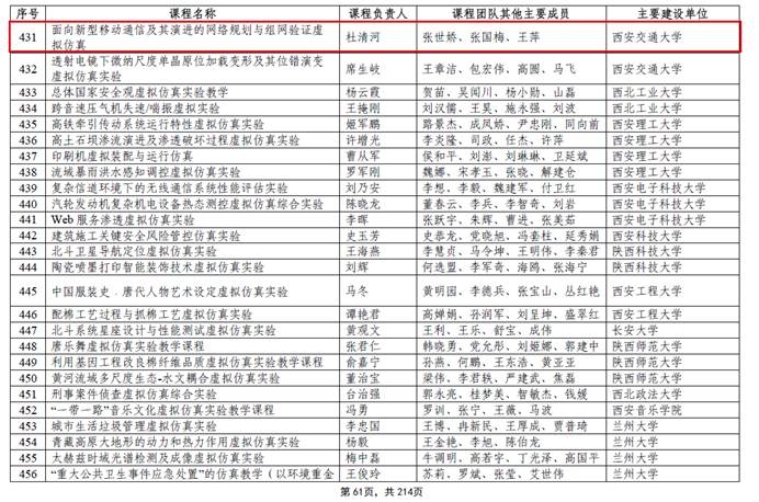 近日,教育部公布了第二批国家级一流本科课程名单,拟认定5751门课程为第二批国家级一流本科课程。其中,线上课程1095门,虚拟仿真实验教学课程472门,线上线下混合式课程1801门,线下课程2076门,社会实践课程307门。我院杜清河教授负责的“面向新型移动通信及其演进的网络规划与组网验证虚拟仿真”实验教学课程成功入选。