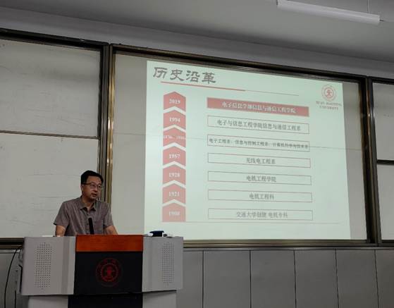 信通学院院长王文杰教授从学科机构沿革、学科方向、机构设置、教学科研基地、师资力量、杰出校友、研究成果等几个方面对学院和学科进行了介绍。王院长指出学校及学院在师资力量、实验条件和科研平台等方面为同学们提供了优良的条件,希望同学们能利用好这些资源,认真学习,全面发展,在当前复杂的国际形势和历史大变局之下,肩负起中华民族伟大复兴的重任。
