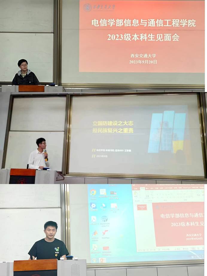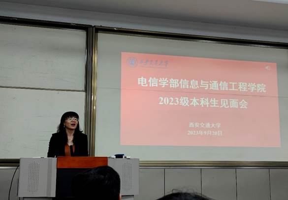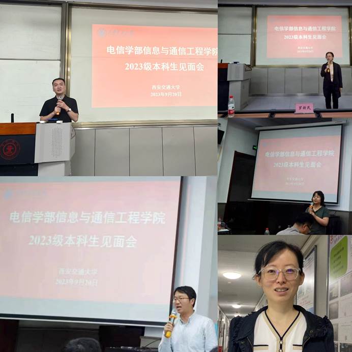 2023年9月20日下午,信息与通信工程学院在兴庆校区中二楼1200举行了2023级本科生新生见面会。电信学部副主任罗新民、仲英书院院务主任黄丽宁、信息与通信技术研究院院长曲桦、信通学院党政领导、教师代表、信通学院2023级本科生辅导员、班主任、高年级优秀学生代表和2023级全体本科生共同参加了此次见面会,会议由学院总支书记张安学主持。
