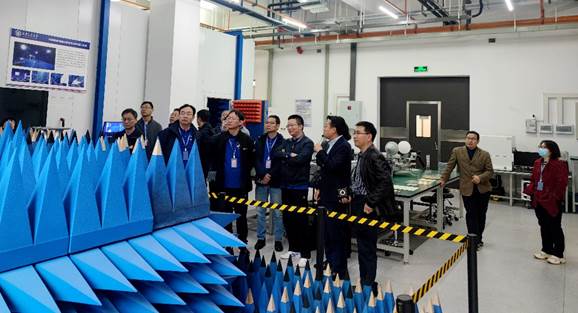 随后,在张安学书记的带领下,各位校友又前往信通学院所在的泓理楼,深度参观了学院展厅及部分科研实验室。通过安学书记的介绍和实地参观,校友们全面了解了学院先进的科研平台和强劲的科研实力,对学科未来发展充满信心与期待。