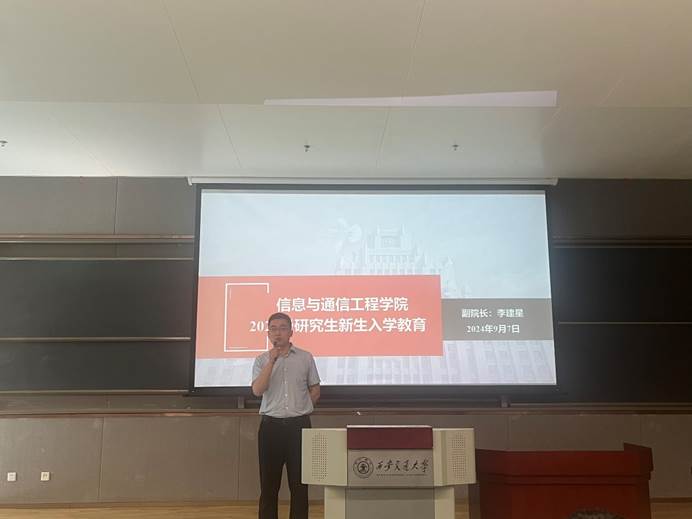 史锋副书记代表学部对信通学院全体2024级研究生们表示热烈欢迎。史书记首先强调信通学院有着严格严谨的治学要求,希望同学们在信通学院刻苦攻读,努力求学,做出优异的成果。然后从遵守学校、学院和宿舍方面的规章制度,与导师、团队同学和舍友和谐相处,加强沟通和交流,增强团结合作意识,以及严防电信诈骗等几个方面给同学提出了建议和期望。最后勉励同学们经过研究生阶段的培养,成为国家栋梁,成为交大骄傲!
