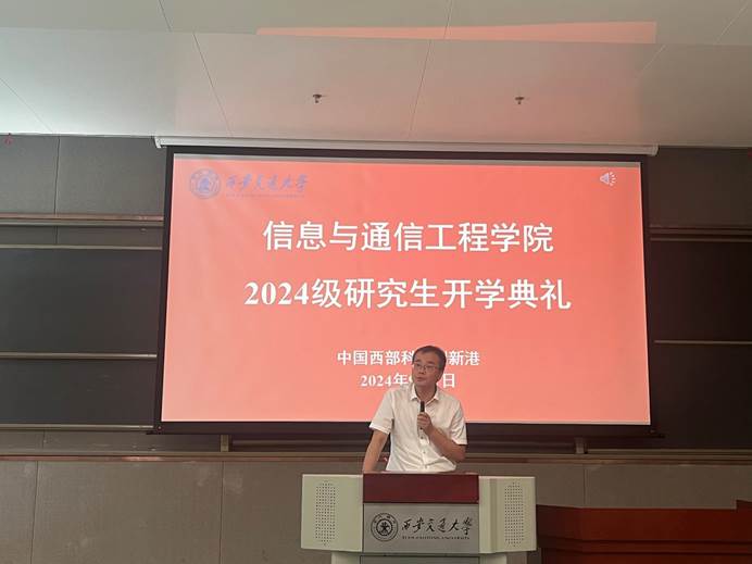 2024年9月7日上午,信息与通信工程学院在中国西部科技创新港涵英楼5-1E103会议室举行了2024级研究生入学教育暨开学典礼。电信学部分党委副书记史锋和信通学院党政领导、教师代表、2024级全体研究生共同参加了此次开学典礼,会议由学院总支书记张安学主持。