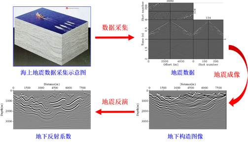 图3展示的是近期课题组在地震数据偏移成像领域取得的最新进展。我们将地震成像作为一个反问题进行求解,能够更加准确得从地震数据中得到地下构造位置和反射系数。